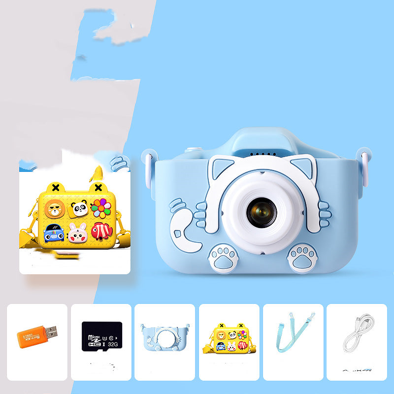 J: [Puqing blue cat + satchel] front and rear dual camera, self-timer + 16G card