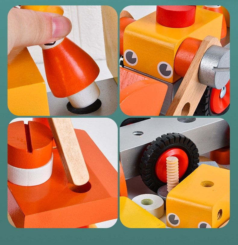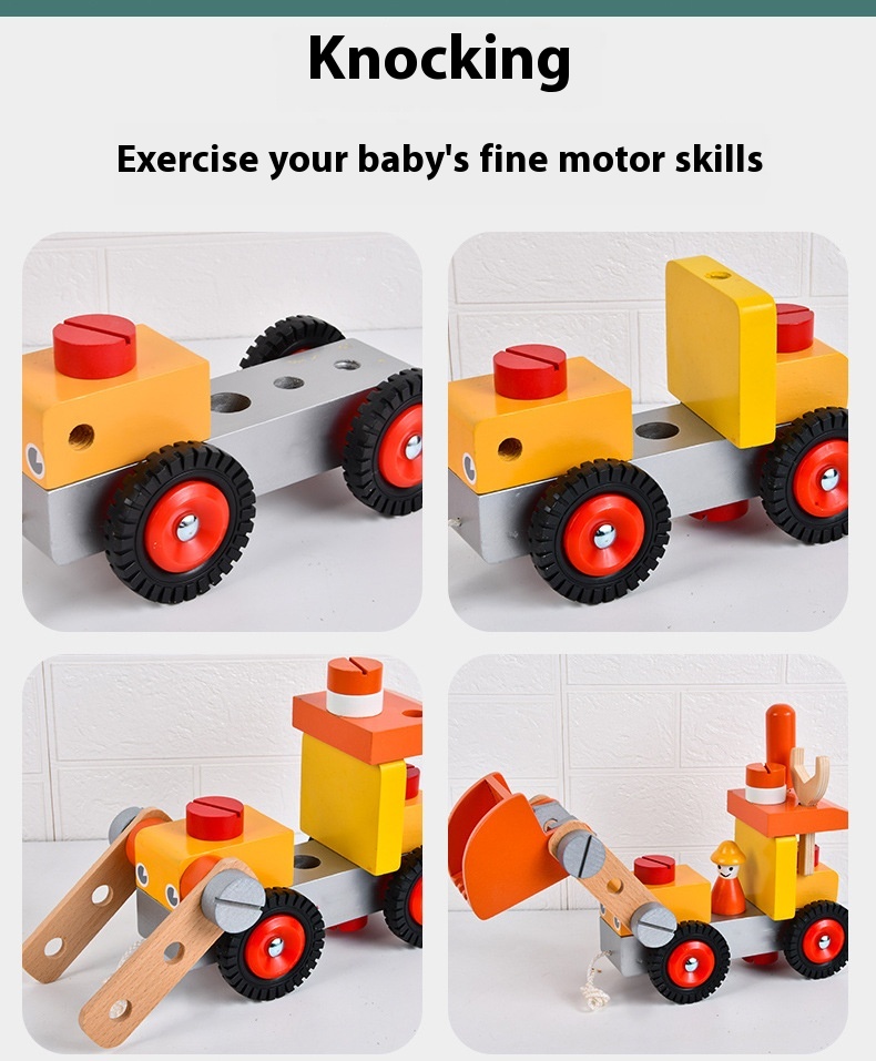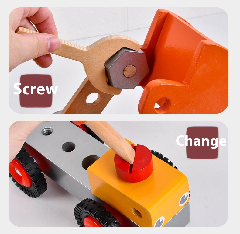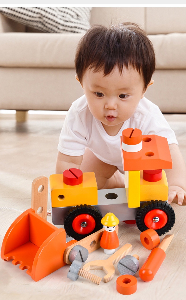 Wooden Engineering Vehicle Assembled Excavator Young Children Education Toy